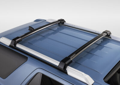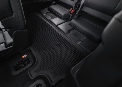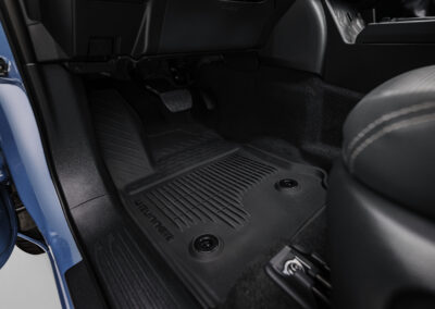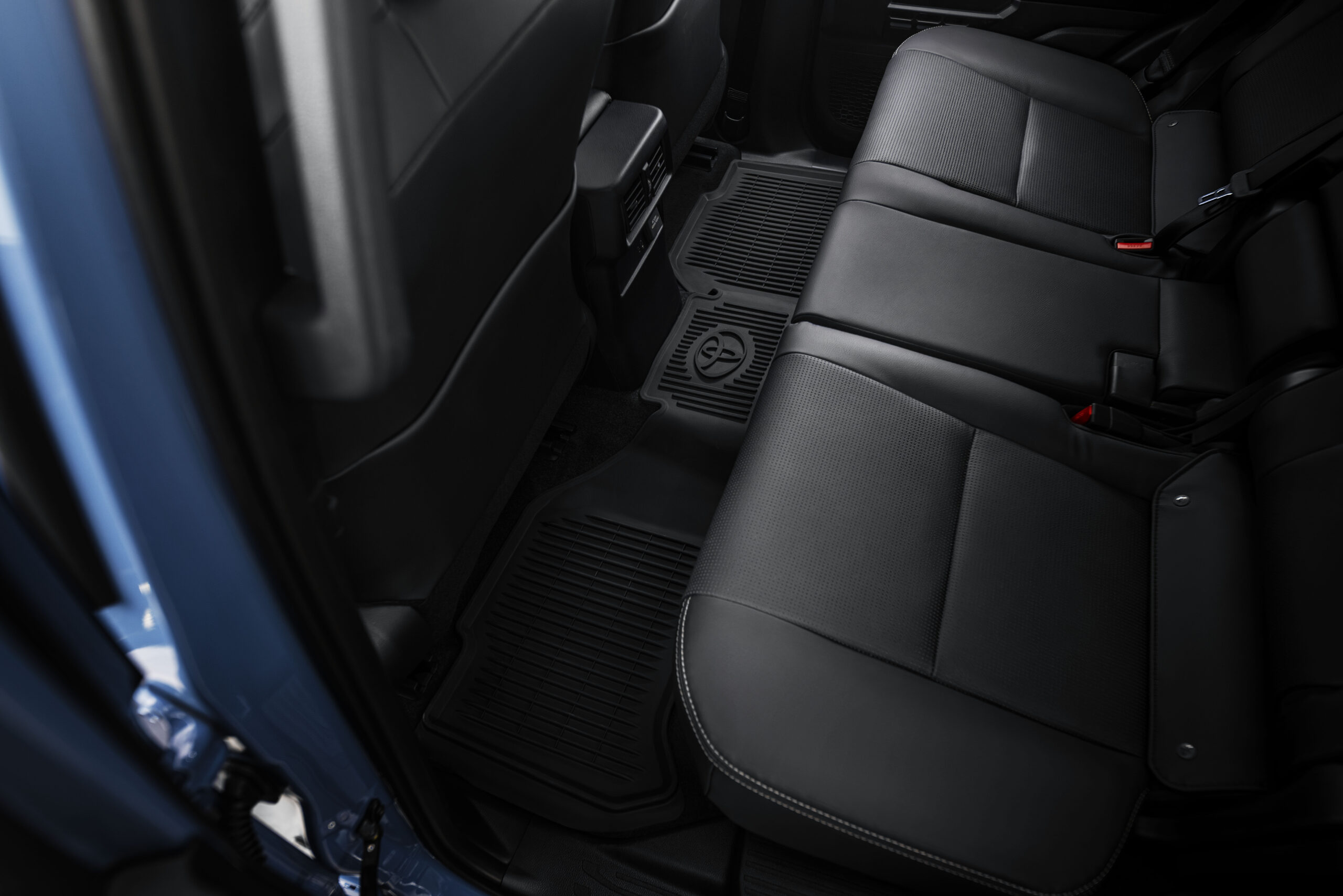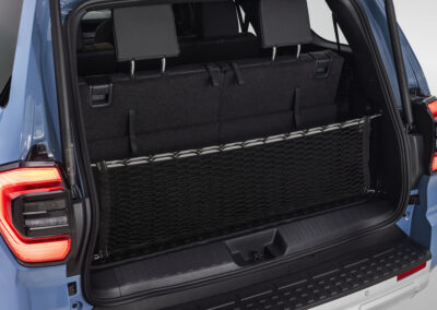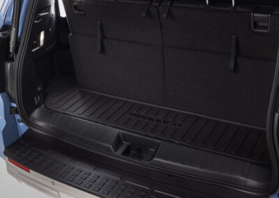Renovada y agresiva mascara frontal con sólida barra de diseño horizontal. La rudeza del parachoque frontal resalta además por las luces direccionales rectangulares de gran tamaño.
