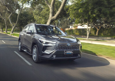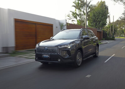 El nuevo Corolla Cross cuenta con una gran parrilla frontal que le da mucha presencia. Los faros LED se posicionan justo por debajo de la parte superior de la parrilla y así le da un porte más robusto al frente.